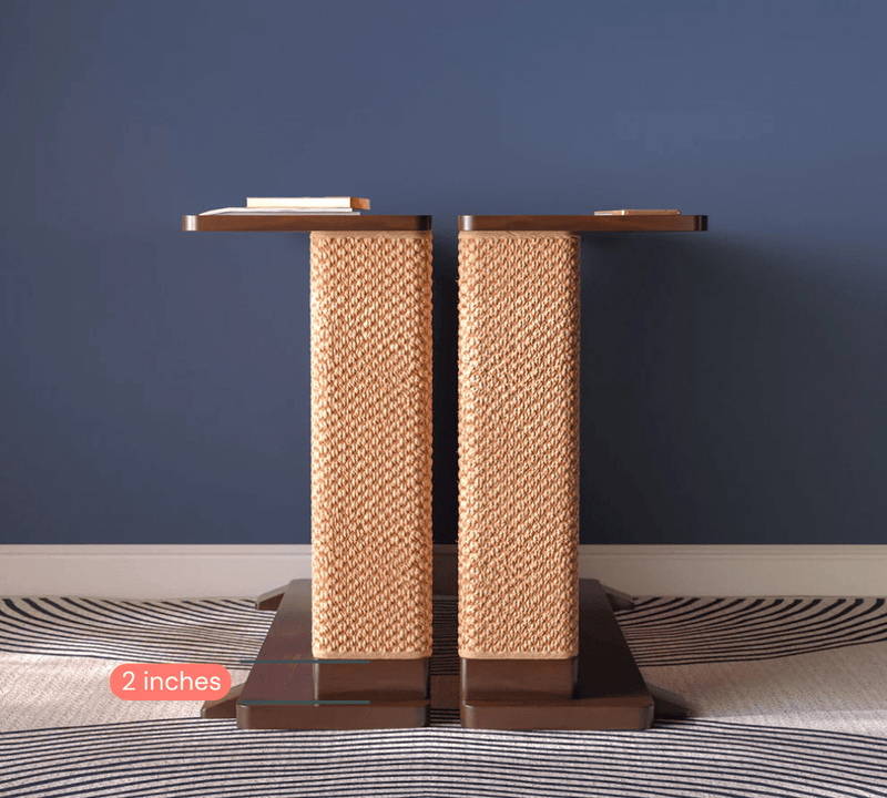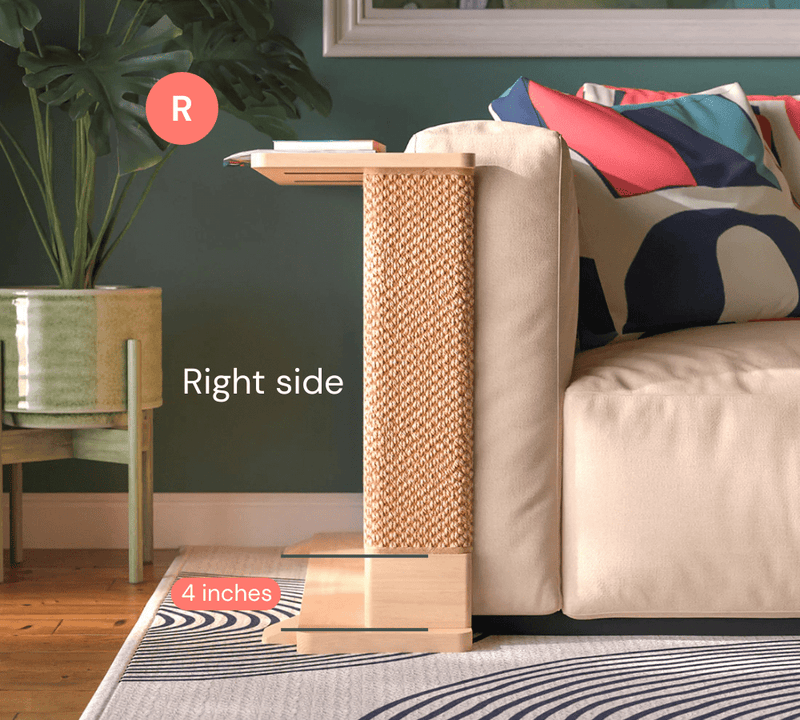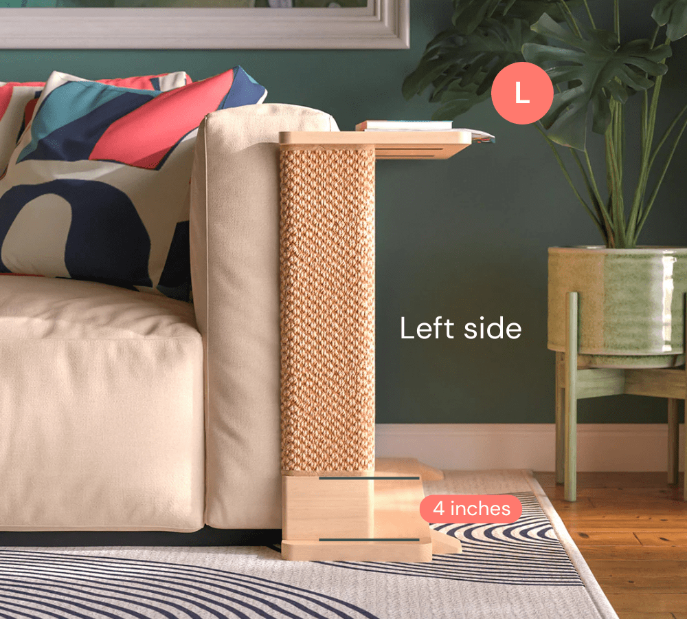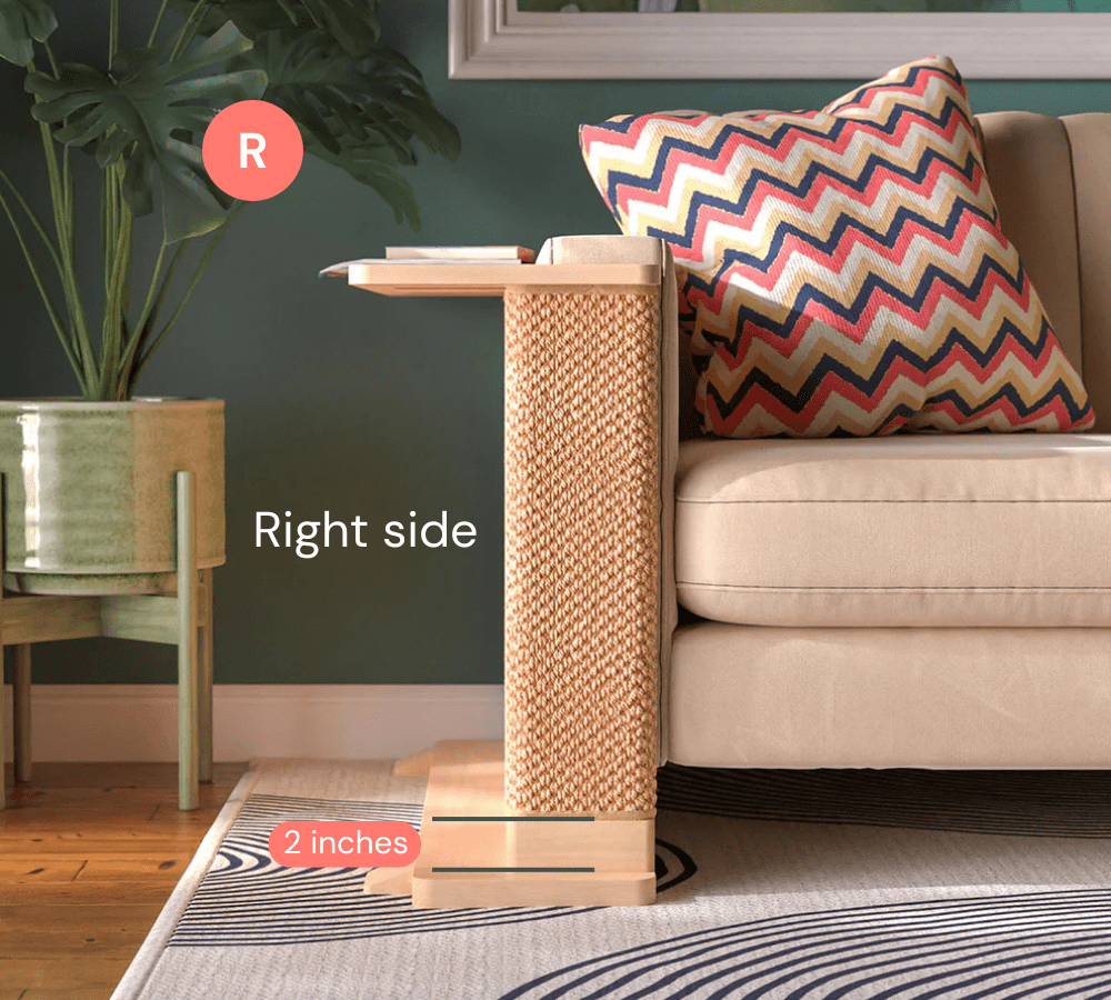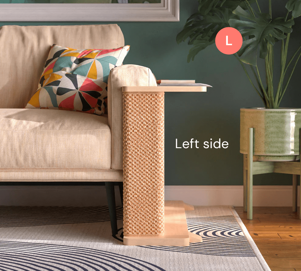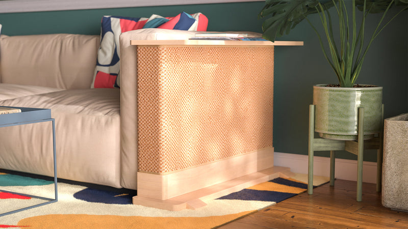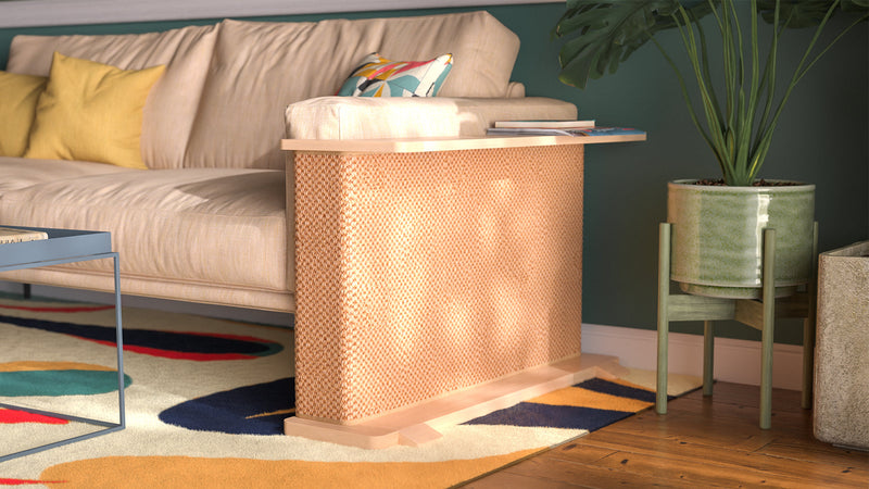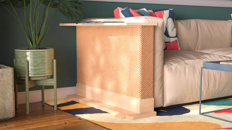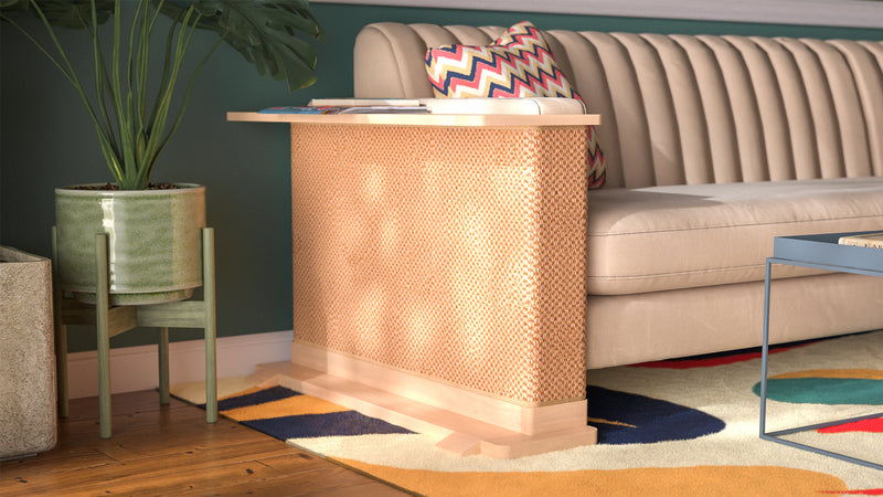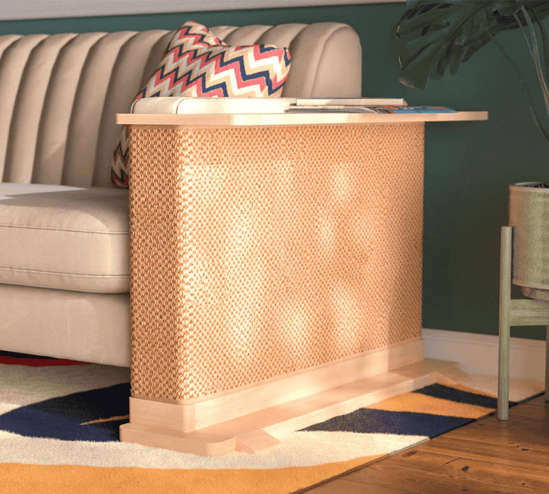 Each Cat-e-Corner is a one-of-a-kind piece, meticulously crafted from sustainably sourced solid wood. The Cat-e-Corner blends your cat’s scratching surface with a functional table for you - all in one beautiful piece.