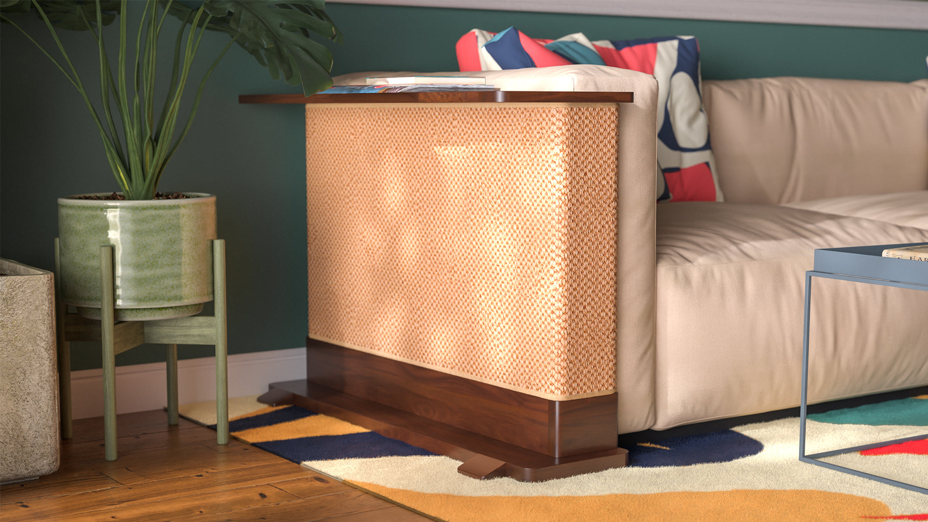 With different woods, mats, and modular sizing, Cat-e-Corner is customizable to fit your couch and style.